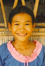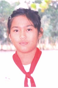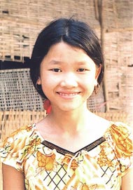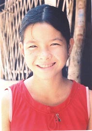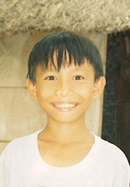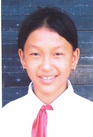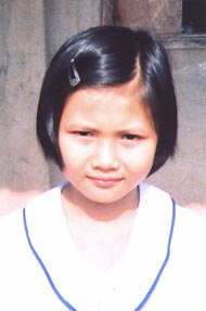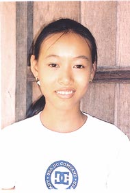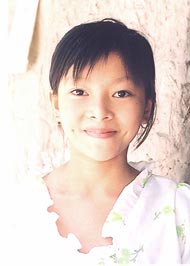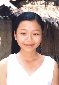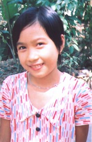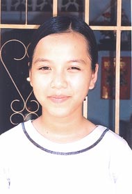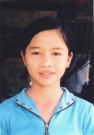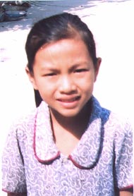 my family: My parents are divorced. My mother is a hired labourer in another province, she sometimes pays us a visit. My father remarries another woman with whom we are living with at the moment. We have a field on which rice is grow. However, we have to sell rice to cover our debts, a result of crop failure. My father hires another field to plant tobacco for a living. I have two siblings, the older one quit school when she was only 11 years old to help my father and the younger is only 2 years old. After school I help with the housework or work on the field with my father.