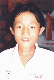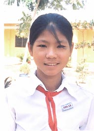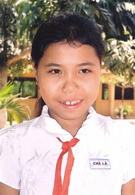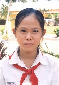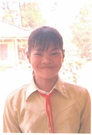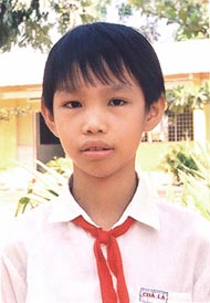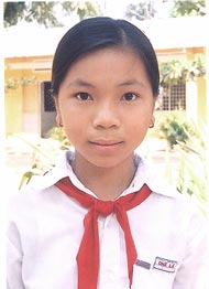 my family: My father had an accident at work, which results in his inability to work now. We are taking care of our grandmother and a mentally-impaired uncle. My mother is a housewife as she could not find a job. We plant some cashews on my grandmother's land but do not earn much from this as we lack labour and money. My older sister is an au pair in Ho Chi Minh City. She had to stopped her schooling early to help the family. We even cannot afford an electricity supply. Last year my academic results were good.