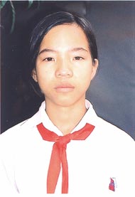 my family: My father is dead. My mother remarried another man, taking my younger sister along with her. I am left in the care of my grandmother and my aunt. My grandmother is over seventy but is still working. She sits all day putting candies into plastic bags, earning VND 500 (USD 0.03) for 100 bags. After school time I help my grand with this work. My aunt does the embroidery; the income from this job is unstable as it depends on how many works she embroiders a day. She can earn at most VND 10,000 (USD 0.60) for hard day’s work. I got a pretty good school report last year.